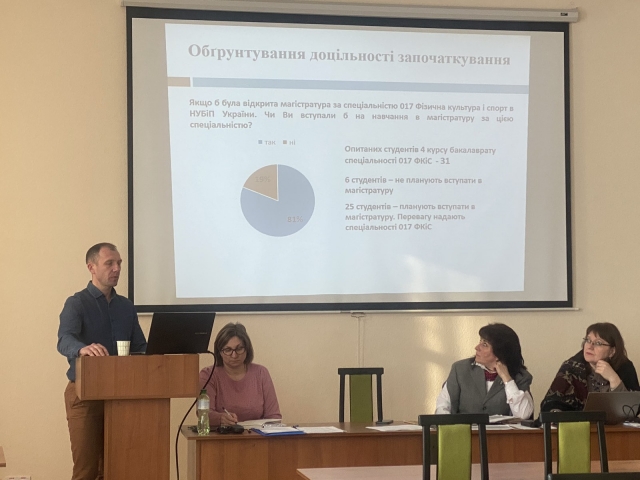 Ще одним стрижневим питання вченої ради було питання про відкриття магістратури зі спеціальності «Фізична культура і спорт». Доцільність започаткування освітньо-професійної програми другого (магістерського) рівня вищої освіти за спеціальністю 017 «Фізична культура і спорт» галузі знань 01 «Освіта/Педагогіка» (кваліфікація: магістр фізичної культури і спорту) обґрунтував т.в.о. завідувача кафедри фізичного виховання Сава Бринзак.
