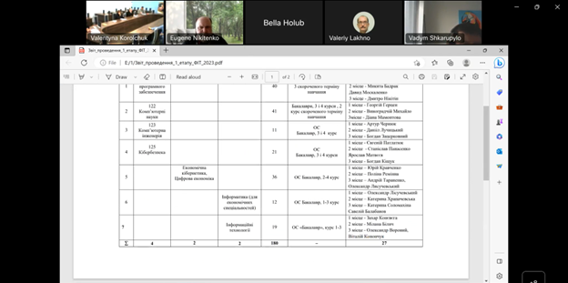 Згідно порядку денного, наступне питання відображає стан підготовки результатів самоаналізу з акредитації освітніх програм спеціальностей 121 «Інженерія програмного забезпечення» та 123 «Комп'ютерна інженерія».