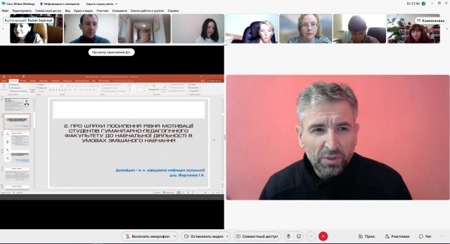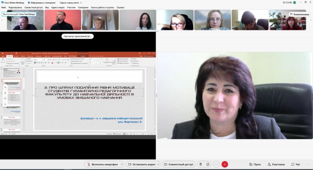 Завідувач кафедри психології, доцент Ірина Мартинюк розповіла про особливості навчальної мотивації студентів та провела невеликий тренінг для учасників семінару з використанням платформи Kahoot. Доповненням до цього питання стала інформація завідувача кафедри педагогіки, професора Руслана Сопівника щодо шляхів підвищення рівня мотивації студентів до навчання.