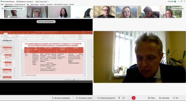Завідувач кафедри управління та освітніх технологій, професор Сергій Кубіцький презентував основну мету та завдання проведення циклічного науково-методичного семінару «Розвиток педагогічної компетентності аспірантів НУБіП України», план проведення якого схвалили члени Вченої ради гуманітарно-педагогічного факультету.