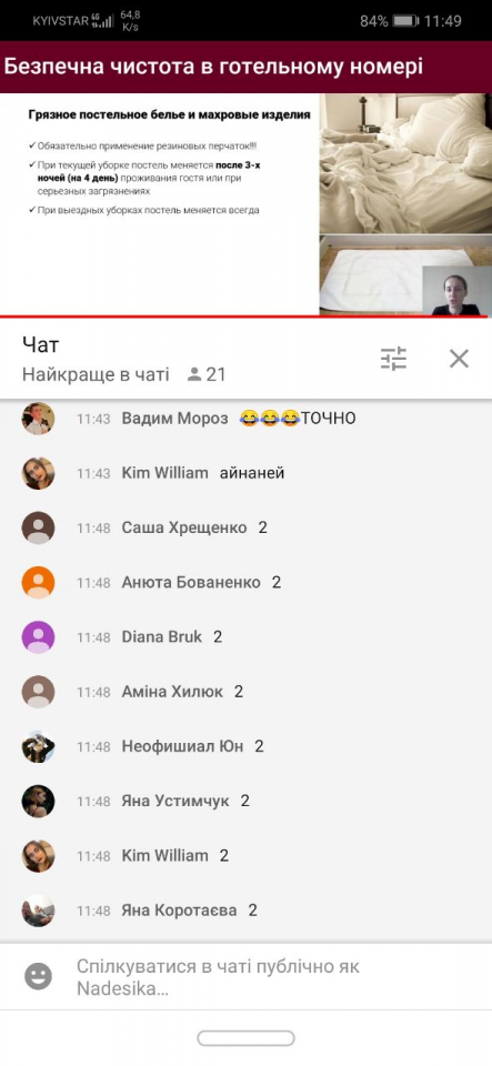 Вебінар для студентів спеціальностей «Туризм» і «Готельно-ресторанна справа» на тему: «Безпечна чистота в готельному номері»
