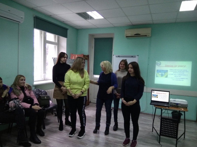 У понеділок, 4 листопада у стінах Київського міського центру соціальних служб для сім’ї, дітей та молоді для майбутніх фахівців соціальної сфери було проведено таке заняття. Ганна Миколаївна Шабатіна окреслила коло проблем, які вирішує Центр. Цікавою стала групова вправа на визначення умотивованості клієнтів. Хто був уважним, той запам’ятав, що центр надає послуги на безоплатній основі. Це були ключові слова. І тут головним було саме переконати, вмотивувати клієнта, щоб він за допомогою фахівців почав долати труднощі. Загалом кілька годин заняття пролетіло непомітно.