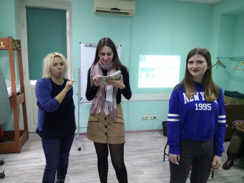 Цікавим і плідним цього разу було виїздне практичне заняття для студентів четвертого курсу спеціальності «Соціальна робота» з навчальної дисципліни «Інформаційні ресурси забезпечення соціально-педагогічної діяльності». Розкривши структуру Центру, Ганна Миколаївна Шабатіна поставила студентам проблемні питання. Приємно було спостерігати жваву дискусію та обізнаність студентів з проблем надання соціальної допомоги різним групам клієнтів. Студенти згадали всі категорії клієнтів, окрім торгівлі людьми… Так, саме починаючи з 2016 року Київ (аеропорт Бориспіль) став «перевалочним пунктом» для торгівлі людьми. Тому Ганна Миколаївна більш детально зупинилась на цьому аспекті роботі. Не менш цікавими і бадьорими стали для студентів тренінги. Так, тренінг «Вдягни людину», надав можливість побути студентам в ролі соціального працівника. За одну хвилину необхідно було написати інструкцію районному соціальному працівнику як вдягнути на людину курточку. При цьому постійно працівника відволікали іншими завданнями.