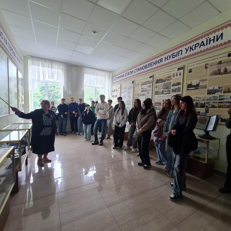 Перший етап розпочався з організаційної частини, під час якої екскурсовод розповіла про значення музею для університетської спільноти та його роль у збереженні історичної пам’яті. Студенти дізналися, що музей є важливим культурно-освітнім осередком, де зібрано матеріали про становлення і розвиток НУБіП України. Вступне слово екскурсовода допомогло налаштувати присутніх на пізнавальний лад і зацікавити історією закладу.
