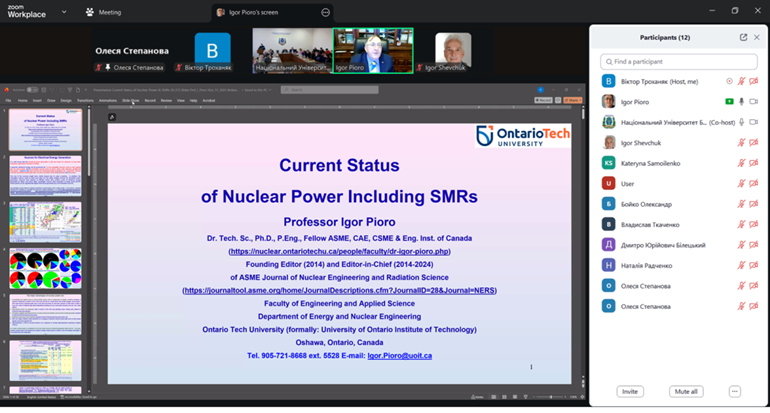 Професор Університету Онтаріо (Канада) Igor Pioro у своїй доповіді розкрив особливості сучасного стану та перспектив розвитку ядерної енергетики в світі та її значення для України.