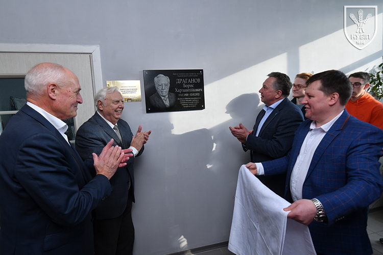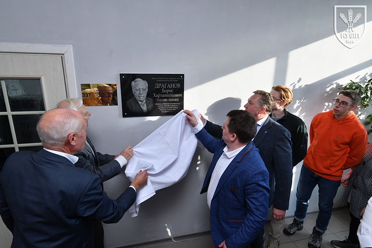 По закінченні пленарного засідання на учасників чекало ще декілька важливих заходів. Вони взяли участь у відкритті меморіальної дошки професору Б.Х. ДРАГАНОВУ у навчальному корпусі №11 НУБіП України, де він працював останні 20 років.
