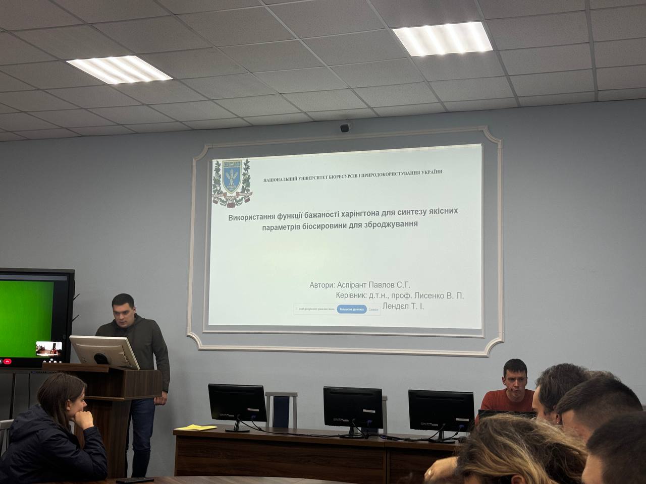 Наступна доповідь виконана аспірантом кафедри автоматики і робототехнічних систем ім. акад. І.І. Мартиненка Сергієм ПАВЛОВИМ на тему «Функції бажаності Харінгтона для оцінки якісних параметрів біосировини для зброджування».