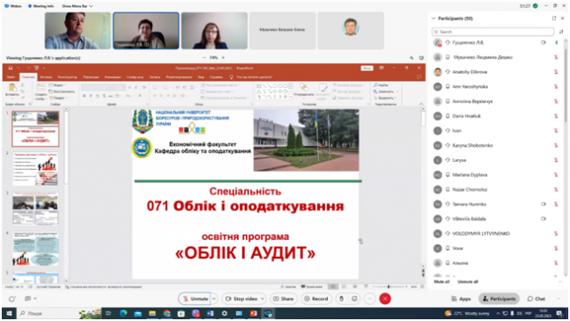 Для студентів міжкафедральних навчальних лабораторій на базі Бобровицького, Заліщицького, Ірпінського, Мукачівського та Рівненського фахових коледжів НУБіП України спеціальностей - 051 »Економіка», 071 «Облік і оподаткування», 072 «Фінанси, банківська справа та страхування» та 076 «Підприємництво, торгівля та біржова діяльність» була проведена презентація магістерських програм, які є на факультеті.