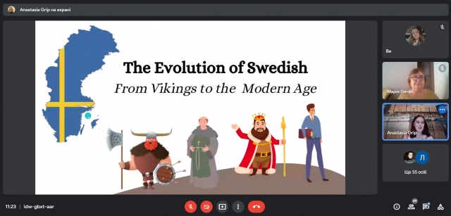 Жвавий інтерес викликала доповідь Анастасії Гріп, магістрантки кафедри медичної біохімії та мікробіології Уппсальського університету (Швеція) «The History and Development of the Swedish Language: from the Vikings to the Modern Age». Цікаве лінгвістичне дослідження проведено в порівняльному аспекті: шведська мова – англійська мова – німецька мова.