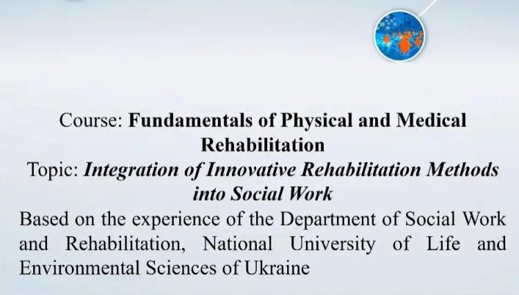 Тема лекції: «Інтеграція новітніх методів реабілітації в соціальну роботу (Integration of Innovative Rehabilitation Methods into Social Work)».
