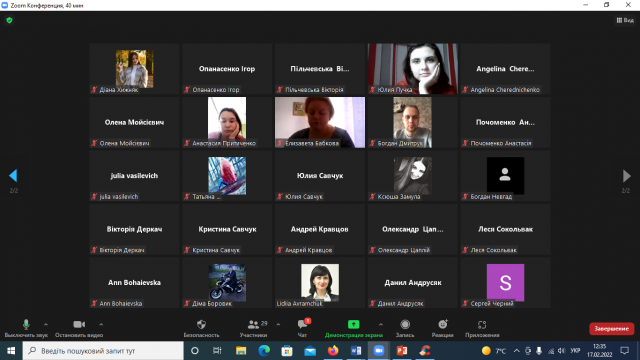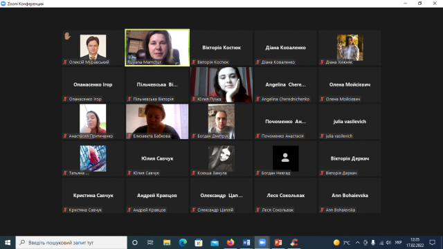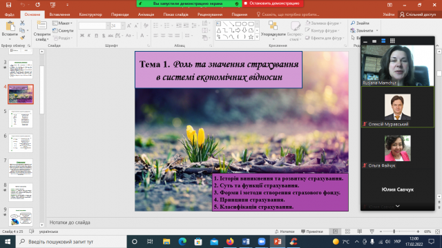 Лекція проходила в online режимі. На відкритій лекції були присутні завідувач кафедри банківської справи та страхування д.е.н., професор Худолій Л.М., викладачі кафедри: к.е.н., доценти Аврамчук Л.А., Жарікова О.Б., Муравський О.А., Файчук О.В. та відповідальна від економічного факультету для здійснення контролю за якістю навчання к.е.н., доцент Костюк В.А.