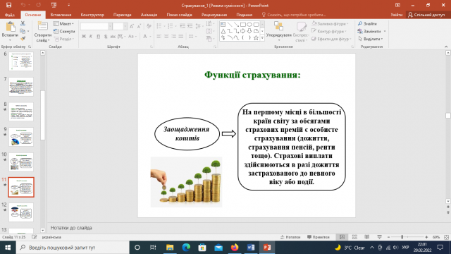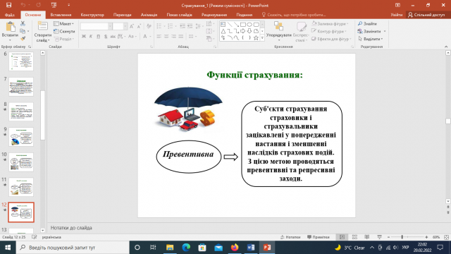На лекції була розкрита сутність страхування, його роль та значення в системі економічних відносин, історичні передумови та основні етапи його становлення, функції та принципи організації, розглядалися особливості формування страхових фондів, визначалися класифікаційні ознаки.