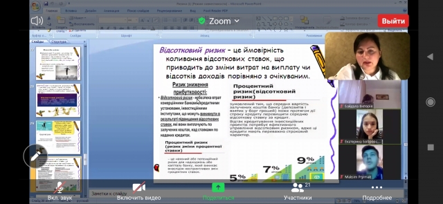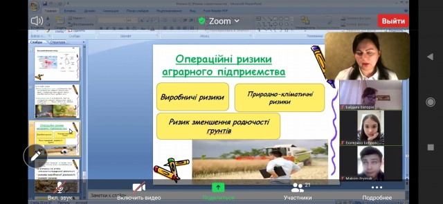 На лекції були присутні: завідувач кафедри економіки, доктор економічних наук, професор Байдала В.В., доктор економічних наук, професор кафедри економіки Єрмаков О.Ю., к.е.н., доцент кафедри банківської справи та страхування Костюк В.А., доценти кафедри економіки, кандидати економічних наук: Степасюк Л.М., Гуцул Т.А., Суліма Н.М., Балан О.Д., асистент, кандидат економічних наук Рубан О.О., старший викладач Коваленко Л.В. Згідно плану лекційного заняття було визначено сутність ризику, охарактеризовано основні види ризиків, функції та джерела їх виникнення. Лекція супроводжувалась змістовним презентаційним матеріалом, була підкріплена низкою прикладів різної направленості.