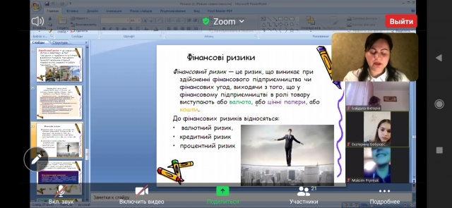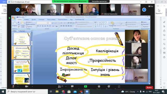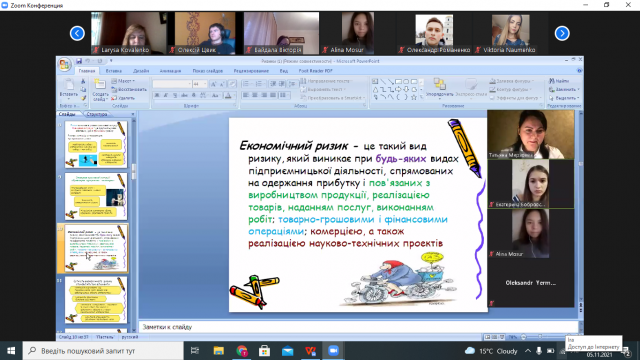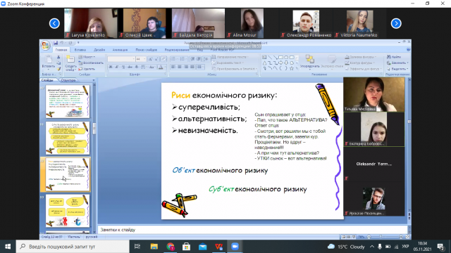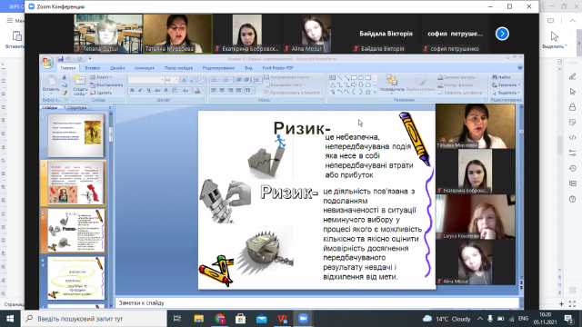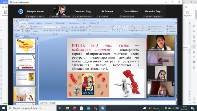 5 листопада 2021 р. на 2 парі відбулася відкрита лекція з дисципліни «Обгрунтування господарських рішень і оцінка ризиків» для студентів економічного факультету, освітнього ступеня «Бакалавр», спеціальності «Економіка» на тему: «Економічна сутність і значення ризиків».
