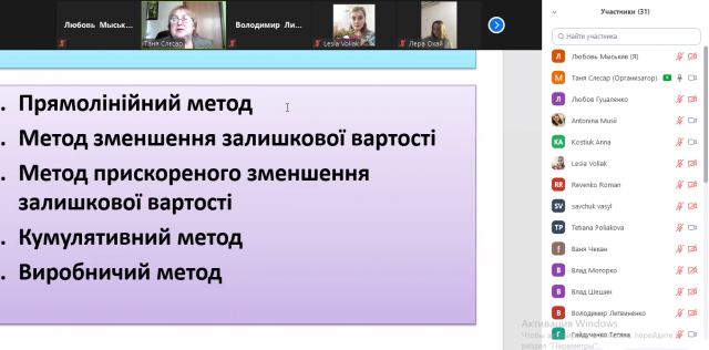24 березня 2021 року доцент кафедри обліку та оподаткування, к.е.н., доцент Слєсар Тетяна Миколаївна провела відкриту лекцію з дисципліни «Організація бухгалтерського обліку» для студентів 5 курсу ОС «Магістр» спеціальності «Облік і оподаткування» на тему: «Особливості організації обліку активів».