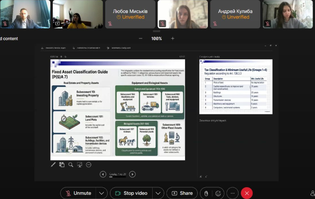 Лектор розкрила питання економічного змісту та класифікації необоротних активів за НП(С)БО та ПКУ, особливостей оцінки основних засобів залежно від каналів надходження, методів нарахування амортизації. Було розглянуто порядок документального оформлення операцій з основними засобами, їх синтетичний та аналітичний облік; особливості обліку оренди, ремонту тощо.