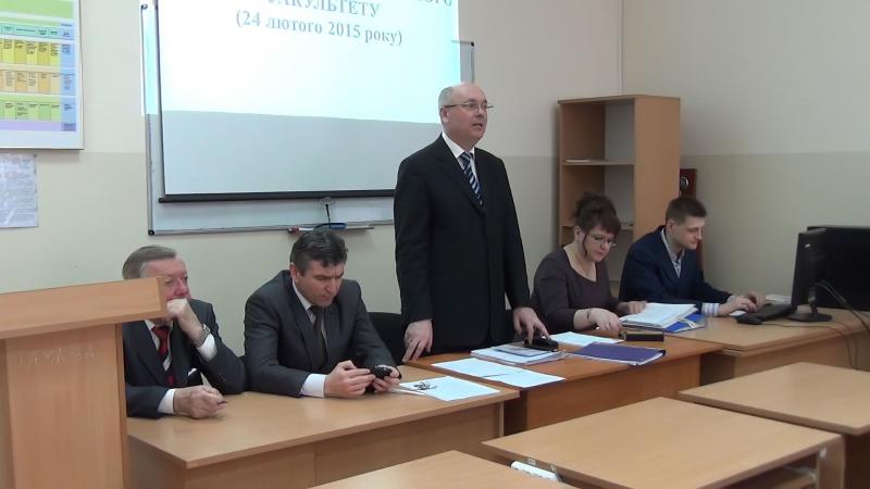 Розглянуто такі важливі питання, як результати зимової заліково-екзаменаційної сесії 2014–2015 н. р.: завдання кафедр щодо підвищення мотивації навчання в студентів, виконання педагогічного навантаження професорсько-викладацьким складом ГПФ за І півріччя 2014–2015 н. р.