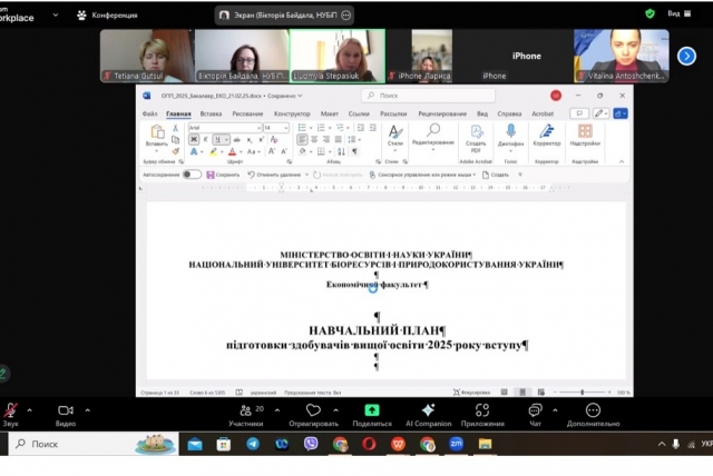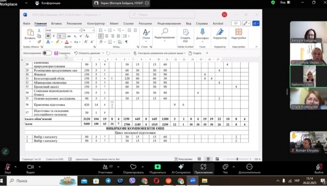 26 лютого 2025 р. за участі НПП кафедри економіки, стейколдерів і інших запрошених гостей в онлайн форматі на платформі Zoom відбулося чергове обговорення ОПП «Економіка підприємства» для другого магістерського рівня здобуття вищої освіти. Мета заходу – вдосконалення програми і приведення її у відповідність до змінних вимог сьогодення.З вітальним словом виступили декан факультету економіки, д.е.н., професор Анатолій ДІБРОВА і завідувач кафедри економіки Вікторія БАЙДАЛА. Відкрила зустріч гарант освітньо-професійної програми «Економіка підприємства» підготовки здобувачів освітнього ступеня «Магістр», к.е.н., доцент Тетяна ГУЦУЛ, яка зазначила, що такий захід проходить вже не вперше і наголосила на необхідності й важливості обговорення якості та наповнення освітніх програм.