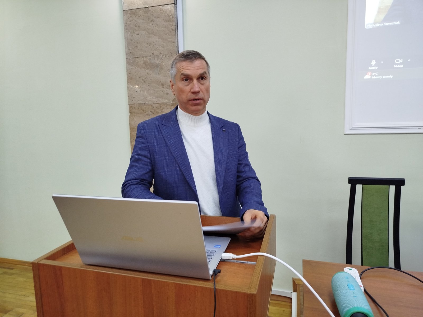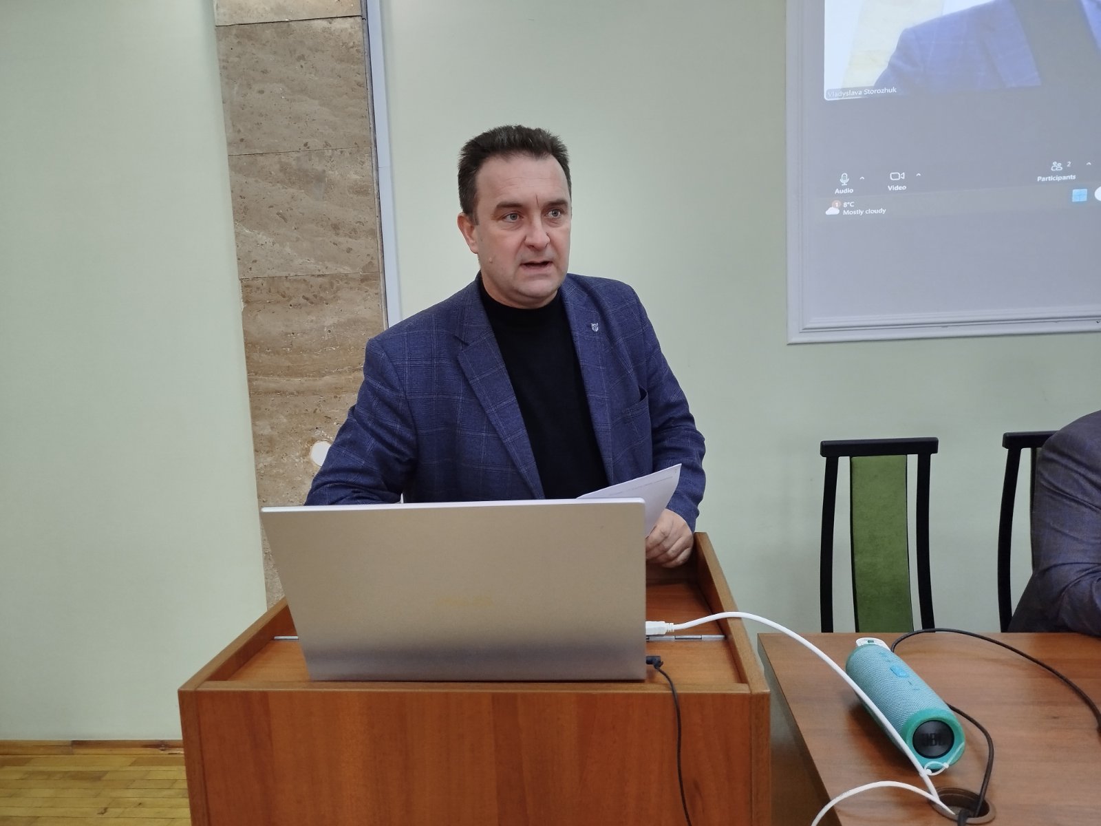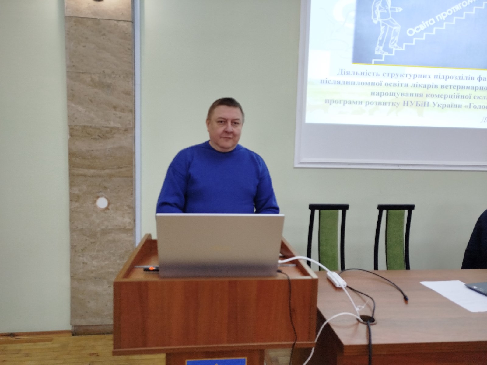 Заступник декана з післядипломної освіти лікарів ветеринарної медицини, доцент Григорій БОЙКО доповів про діяльність структурних підрозділів факультету в забезпеченні післядипломної освіти лікарів ветеринарної медицини та перспективи нарощування комерційної складової в рамках програми розвитку НУБіП України «Голосіївська ініціатива – 2025».