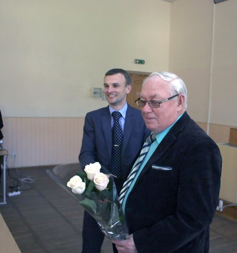 Присутні привітали д.е.н. професора завідувача кафедри управління земельних ресурсів Д.С. Добряка із одержанням звання "Заслужений діяч науки і техніки України"