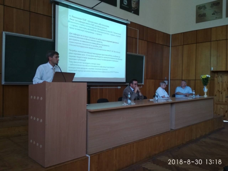 30 серпня 2018 року на механіко-технологічному факультеті відбулися збори трудового колективу та розширене засідання вченої ради. Представником від ректорату був начальник науково-дослідної частини Отченашко Володимир Віталійович.