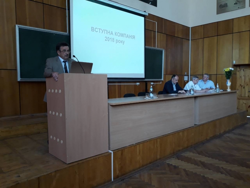 Декан привітав колектив з новим навчальним роком після чого перейшов до основного питання зборів – доповіді про підсумки діяльності колективу за 2017-2018 рік та завдання на 2018-2019 навчальний рік.