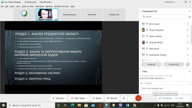 Одним з із важливих етапів підготовки кваліфікаційної роботи є проходження студентами передзахисту. Так 22 квітня на кафедр компютерних систем і мереж відбувся передзахист бакалаврських робіт студентів заочної форми навчання, які навчаються в міжкафедральній лабораіторії та на самому факультеті. Участь у передзахисті також прийняли представники Бережанеського агротехнічного коледжу, заступник директора Олег Калатало та відповідальна за міжкафедральну лабораторію Ірина Кізима.