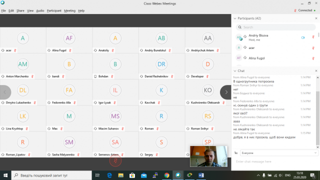 Заняття зі студентами проводяться на платформі Webex, яка дозволяє тримати зворотній зв'язок із студентами, демонструвати навчальний матеріал, а також записувати заняття.