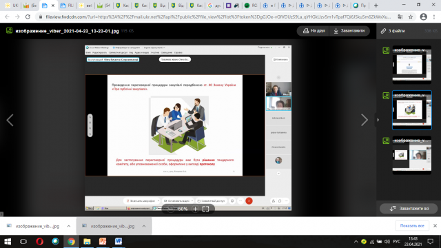 Відповідно до графіку проведення відкритих лекційних і практичних занять у весняному семестрі 2020-2021 навчального року на економічному факультеті, 15 квітня 2021 року доцент кафедри обліку та оподаткування, к.е.н. Боярова О.А. провела відкриту лекцію з дисципліни «Публічні закупівлі» для студентів 1 курсу ОС «Магістр» спеціальності «Облік і оподаткування» на тему: «Порядок організації та проведення переговорної процедури закупівлі», з використанням додатку для проведення відео-конференцій Webex.