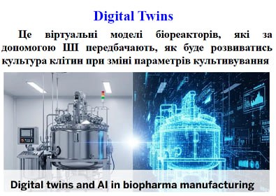Дуже вразили приклади, як застосовують цифровізацію та інтеграцію штучного інтелекту в промислові біотехнології, а саме новітній метод Digital Twins (цифрові двійники) на основі ШІ, тобто віртуальні моделі біореакторів з використанням штучного інтелекту, для оптимізації контролю мікробних процесів, підвищення стабільності виходу продукту та підвищення ефективності виробництва.