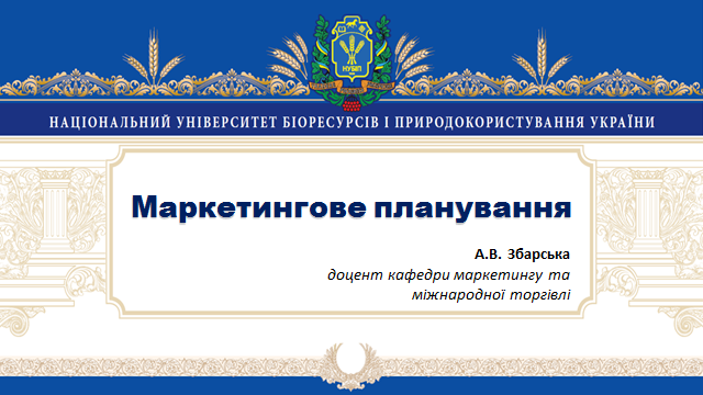 6 квітня 2021 року доцентом кафедри маркетингу та міжнародної торгівлі Збарською Анною Василівною у дистанційному режимі була проведена відкрита лекція для студентів ОС «Магістр» 1 року навчання спеціальності 075 «Маркетинг» з дисципліни «Маркетингове планування» на тему «Теоретична сутність процесу планування стратегії».