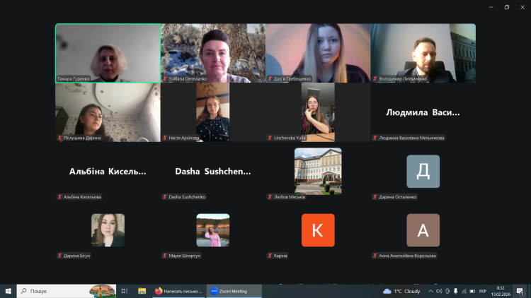 Згідно затвердженого графіку проведення відкритих лекційних і практичних занять у весняному семестрі 2025-2026 навчального року (відповідно до наказу від «06» лютого 2026 р. № 98) на економічному факультеті 13 лютого 2026 р. на 1 парі відбулася відкрита лекція к.е.н., доцентки кафедри обліку та оподаткування Тамари Гуренко з дисципліни «Бухгалтерський облік (загальна теорія)» на тему «Облік процесу придбання та використання активів» для здобувачів першого (бакалаврського) рівня вищої освіти 2 курсу та 1 скороченого терміну навчання спеціальності «Облік і оподаткування» освітньої програми «Облік і аудит» економічного факультету. Лекція проходила в дистанційному режимі з використанням програми Zoom.