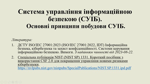 Відкрита лекція професора Олени КРИВОРУЧКО на тему: «Система управління інформаційною безпекою (СУІБ). Основні принципи побудови СУІБ»
