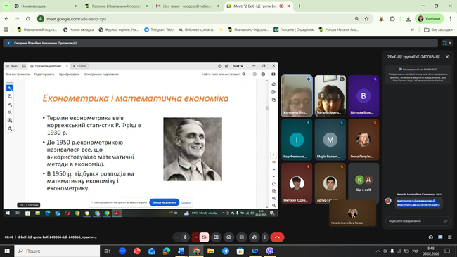 Леція розпочалась з історичного екскурсу в історію становлення економетрики як науки, яка вивчає кількісні та якісні економічні взаємозв'язки з використанням математичних і статистичних методів та моделей.