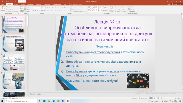 Лектором було представлено відео натурних випробувань на Україні в зимовий період січня 2021 року експлуатації автомобіля Fiat Doblo. Науковий матеріал, що дозволив за допомогою матеріалу презентацій, прийомів розповіді, пояснення та коментування зберегти стійку увагу студентів академічної групи АТ-2104м механіко-технологічного факультету протягом всього заняття. Окрім цього лектор постійно залучав студентів до активної участі у занятті, використовуючи сучасні методичні прийоми та заохочувальні стимули. На завершення була проведена перевірка рівня засвоєння лекційного матеріалу за допомогою технології-відеогри Kahoot. Переможницею з результатом 17 вірних відповідей із 18 тестових запитань стала учасниця з ніком «Знаю Все», за яким виявилась студентка Наталія Місюк.