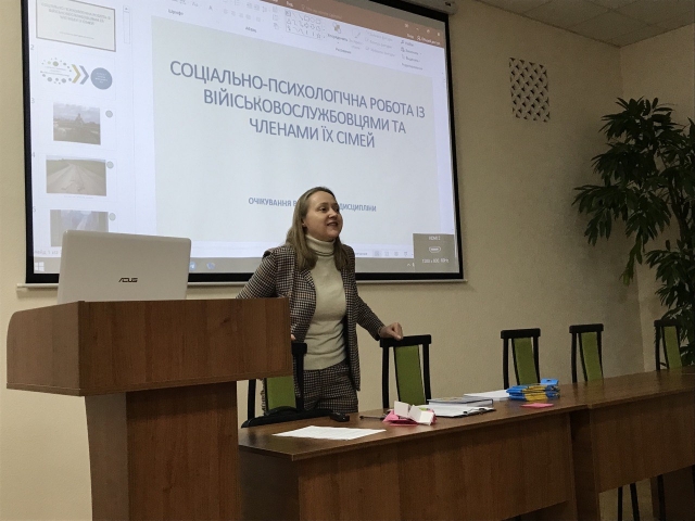 Лекція проводилася із освітнього компонента, який уперше введено до навчального плану підготовки фахівців із соціальної роботи за рекомендаціями стейкхолдерів та на запит здобувачів вищої освіти – «Соціально-психологічна робота із військовослужбовцями і членами їх сімей». Актуальність даного курсу важко переоцінити, оскільки наша країна зазнає військової агресії з боку сусідньої держави із 2014 року. Сьогодні в Україні більше мільйона військовослужбовців, у яких є свої сім’ї та родини, усі вони потребують соціально-психологічного супроводу та підтримки. Важливо готувати фахівців, які б працювали із цією категорією населення, а також усе суспільство до прийняття і підтримки наших захисників.