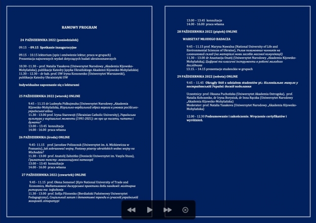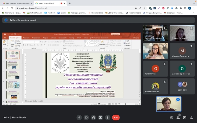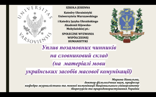 В жовтні 2022 року за запрошенням кафедри україністики Варшавського університету доктор філологічних наук, професор кафедри журналістики та мовної комунікації НУБіП України Марина Навальна прочитала лекцію «Уплив позамовних чинників на словниковий склад (на матеріалі мови українських засобів масової комунікації) та надала консультації в рамках «Зимової школи».