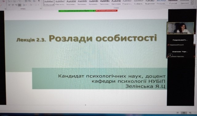Кафедра психології проведено п'ять відкритих лекцій. Проф. Полунін О.В. з дисципліни «Психофізіологія» для студентів 3 курсу спеціальності «Психологія» гуманітарно-педагогічного факультету, проф. Шмаргун В.М. з вибіркової дисципліни «Психологія успіху» для магістрів 1 року навчання, проф. Яшник С.В. з дисципліни «Психологія управління» для магістрів 1 року навчання спеціальності «Нутриціологія» факультету харчових технологій та управління якістю продукції АПК, доц. Зелінська Я.Ц. з дисципліни «Клінічна психологія» для студентів 3 курсу спеціальності «Психологія» гуманітарно-педагогічного факультету, доц. Мартинюк І.А. з дисципліни «Психологічна допомога в кризових та екстремальних ситуаціях» для студентів 3 курсу спеціальності «Психологія» гуманітарно-педагогічного факультету, доц. Теслюк В.М. з дисципліни «Психологія» для студентів 2 курсу спеціальності «Філологія» гуманітарно-педагогічного факультету.
