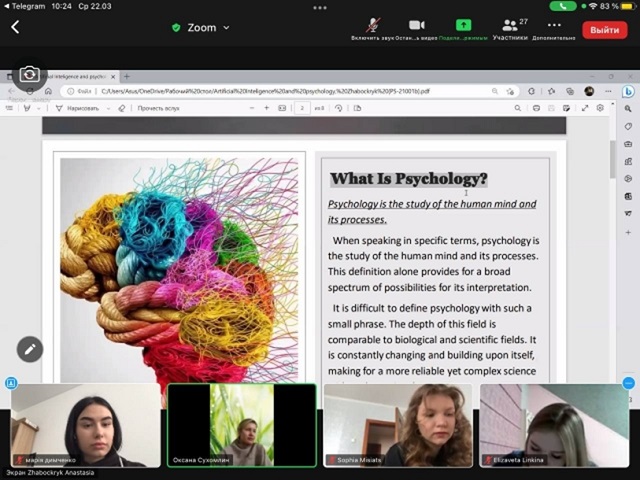 22 березня відбулось відкрите практичне заняття на тему: «The Digital Competence. Digital Skills – Psychology» з дисципліни «Іноземна мова (англійська)» для студентів 2 курсу спеціальності «Психологія» під керівництвом асистента кафедри ангійської філології Оксани Сухомлин.