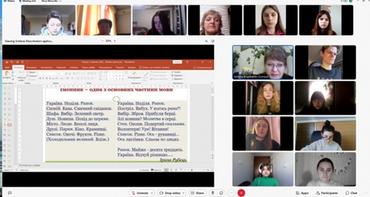2 березня 2023 року відбулася відкрита онлайн-лекція доктора філологічних наук, професорки кафедри журналістики та мовної комунікації Світлани Харченко. Лекцію з навчальної дисципліни «Сучасна українська мова ЗМІ» на тему «Іменник як одна з центральних частин мови. Іменники в мові медіа» слухали студенти 2 курсу ОС «Бакалавр» спеціальності «Журналістика» гуманітарно-педагогічного факультету, викладачі, представники адміністрацій факультету та університету, а також усі бажаючі, яких зацікавила тема лекційного заняття, присвячена іменникові та динамічним процесам в іменниковій системі.