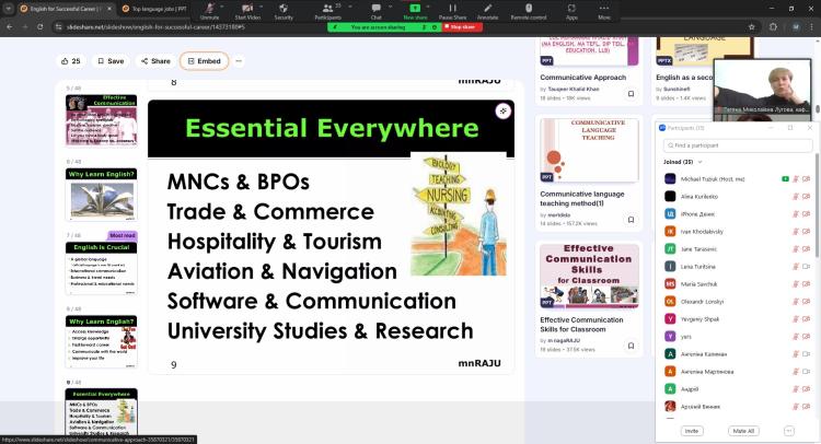 Викладачі кафедри англійської мови для технічних та агробіологічних спеціальностей провели пізнавальну зустріч для учнів ліцеїв №59, №80, №269 та спеціалізованих шкіл №16 та №186 міста Києва присвячену темі «Відкрий для себе нові горизонти, вивчаючи англійську!». Захід мав на меті показати школярам, як знання англійської відкриває нові можливості для навчання, подорожей і побудови кар’єри.