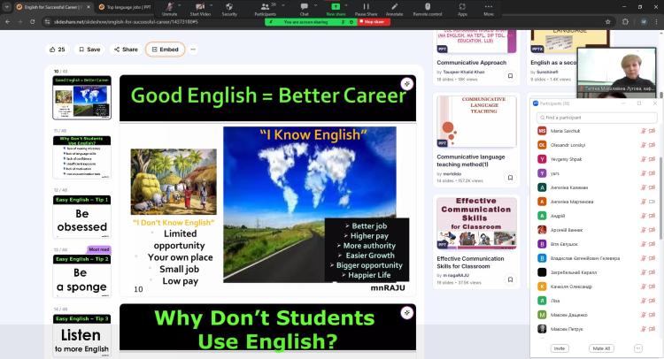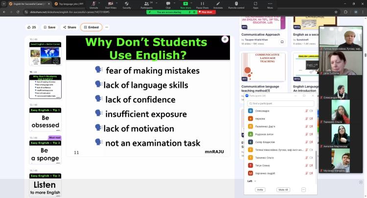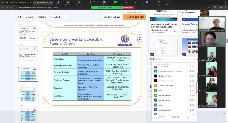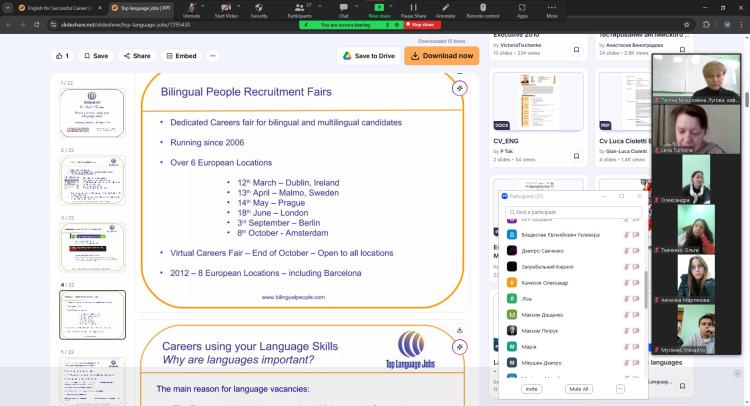 Під час зустрічі панувала жвава атмосфера: школярі ставили чимало цікавих запитань про особливості вивчення мови, міжнародні іспити, освітні програми та можливості стажування за кордоном. Викладачі з ентузіазмом відповідали, наводили приклади успішних історій студентів і порадили ефективні способи вдосконалення мовних навичок.