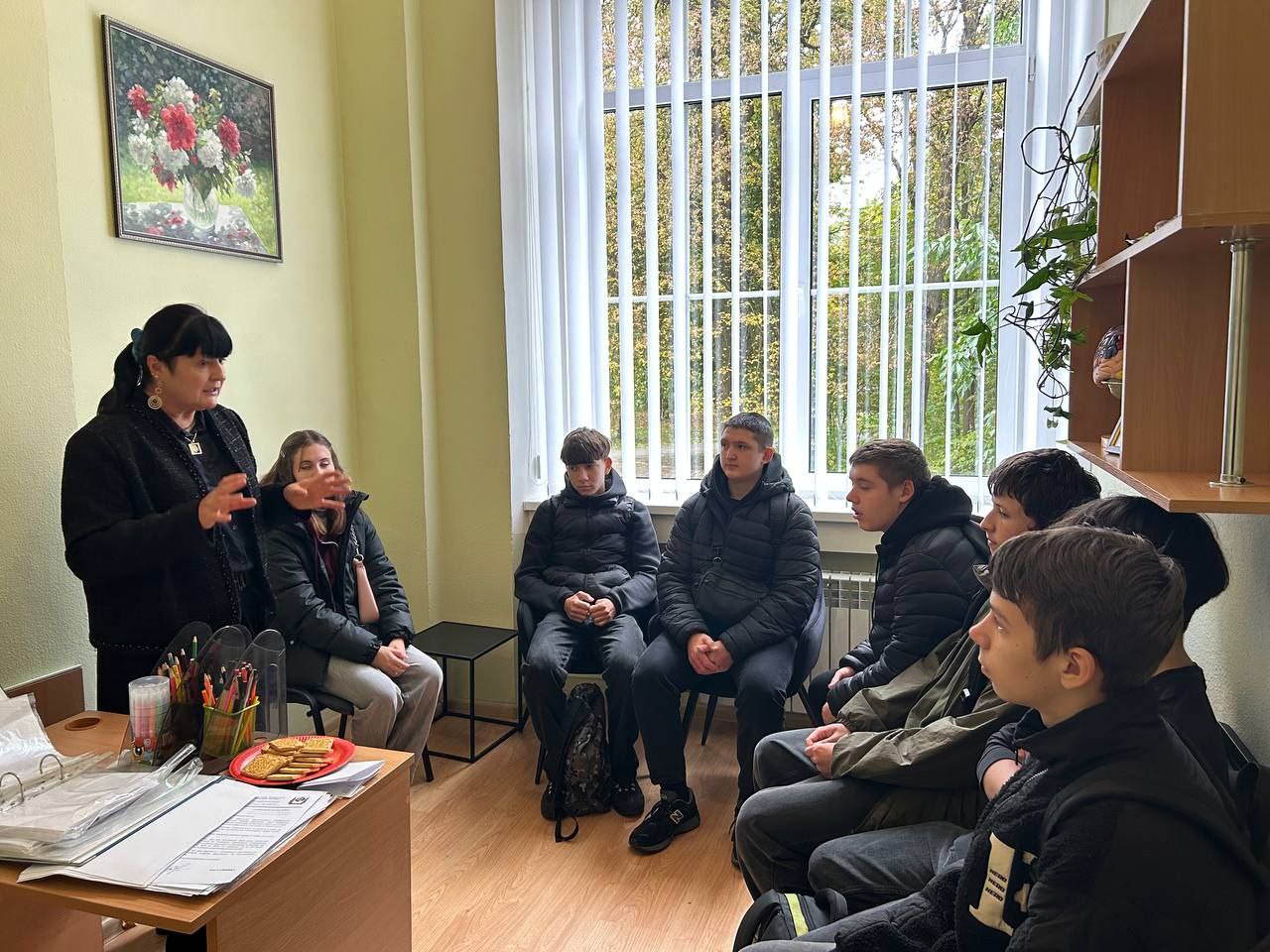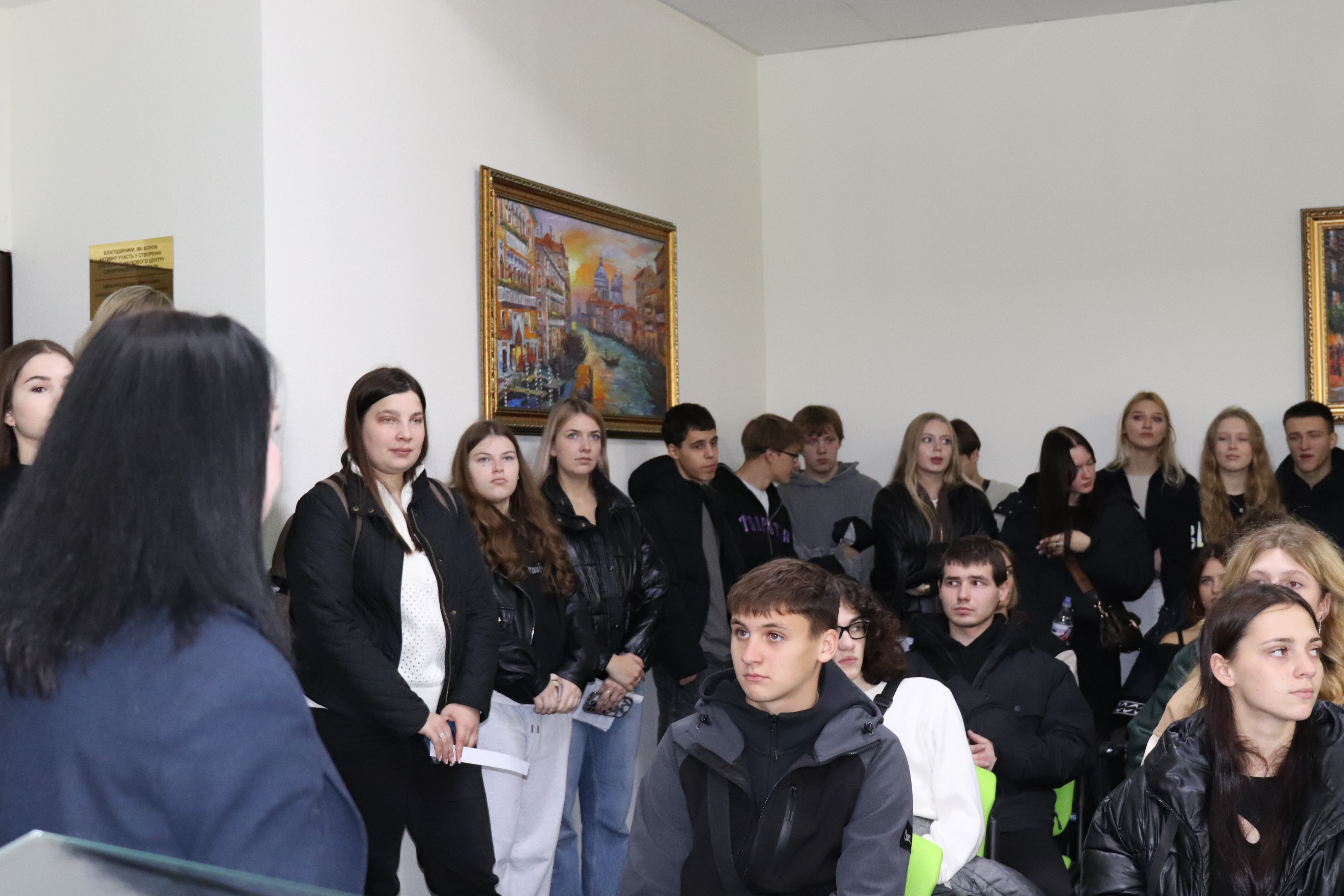 Після цього учні поділилися на групи, щоб відвідати якомога більше аудиторій. Частина відправилась до лабораторії психології розвитку особистості. Там Світлана Володимирівна розповіла про різновиди цієї сфери у сучасному світі та вигідні умови навчання. Вона наголосила, що психолог сьогодні потрібен усюди – у школі, на підприємстві, у військовій сфері, бізнесі та навіть у суді.