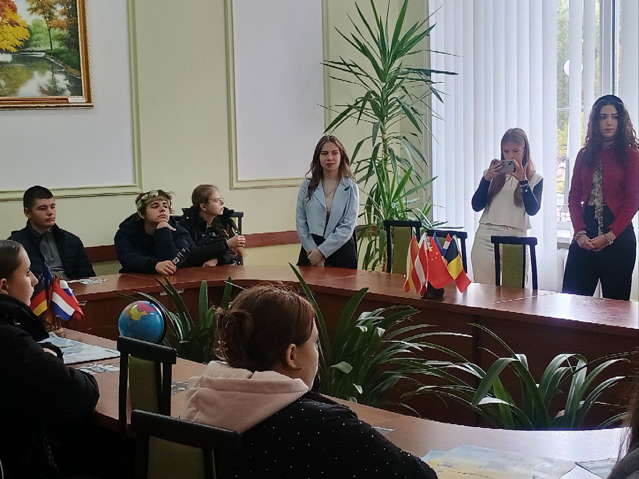 Частина пішла до малої конференц-зали. Там першокурсники гуманітарних спеціальностей розповіли про переваги та багатогранність навчання на них. Далі була інтерактивна гра із викладачкою історії на визначення країн та відомих людей з них.