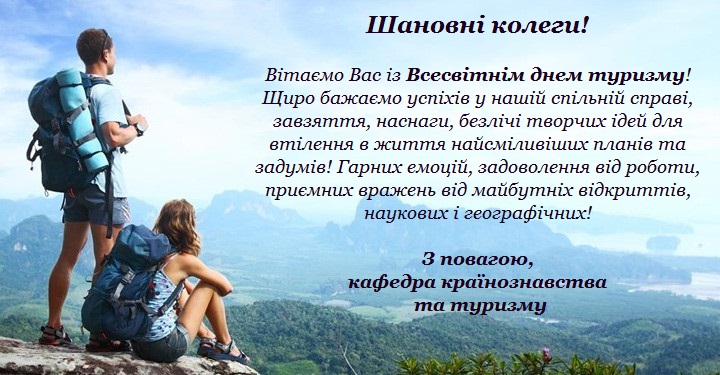 Вітання до Всесвітнього дня туризму кафедрі аграрного консалтингу і туризму від колег