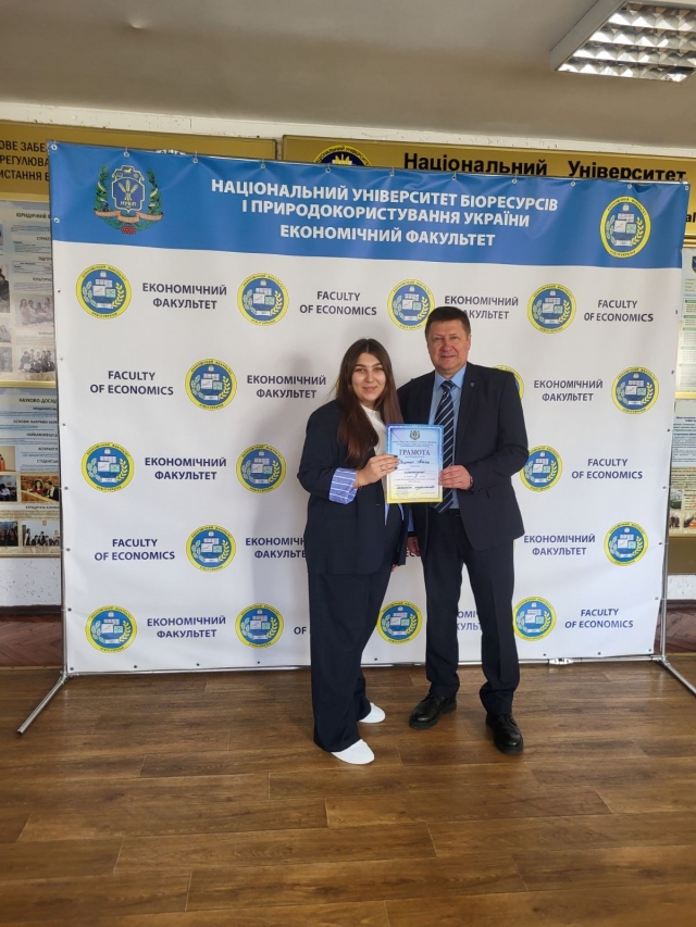Науковий керівник студентів-переможців – к.е.н., доцент кафедри економіки Людмила Степасюк. Перед студентами виступив декан економічного факультету д.е.н., професор Анатолій Діброва. Анатолій Дмитрович привітав переможців та побажав їм подальших успіхів у навчанні та професійній сфері.
