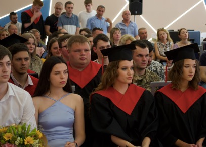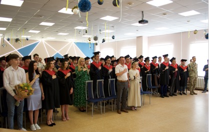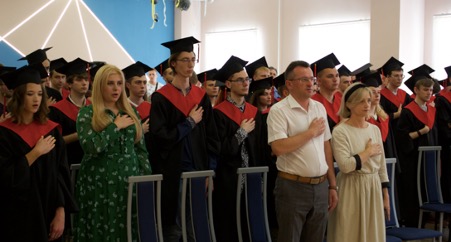 Перед початком вручення прозвучав гімн України. Цього року він мав особливе звучання. Як серед викладачів, так і серед студентів є активні учасники територіальної оборони та лав Збройних Сил України. Один із студентів не зміг поповнити лави випускників - Дмитрик Микола. Всі присутні вшанували пам'ять Героїв хвилиною мовчання.