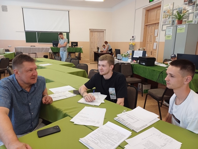За допомогою секретаря приймальної комісії к.е.н., доцента кафедри економіки Чередніченко Олени Олександрівни швидко оформили необхідну документацію. Зустріч і бесіда у приймальній комісії з деканом економічного факультету, д.е.н., професором Дібровою Анатолієм Дмитровичем, хлопців приємно вразила, надала впевненості у своєму виборі.