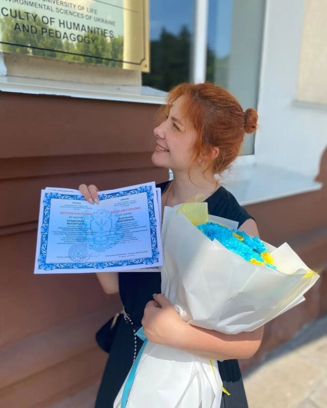 Нещодавно здобула базову вищу освіту в НУБіП України – ступінь бакалавра за спеціальністю 035 Філологія зі спеціалізацією 035.041 Філологія (германські мови та літератури (переклад включно), перша англійська) на кафедрі романо-германських мов і перекладу.