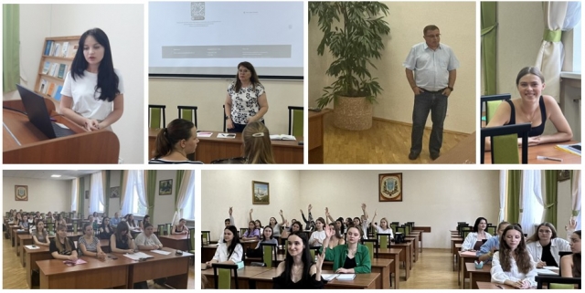Декан представила свою команду. Заступник декана з навчальної роботи Ігор Буцик ознайомив студентів з графіком освітнього процесу, наглядно показав розташування розкладу занять на сайті університету, проінформував про алгоритм дій під час сигналу «Повітряна тривога» та розповів про Правила призначення академічних стипендій у НУБіП України.